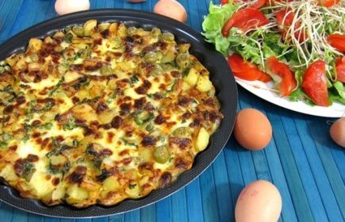 14Добавляем яичную смесь в сковороду и перемешиваем с картофелем. Отправляем в духовку на 15 минут, предварительно разогретую до 180 градусов.