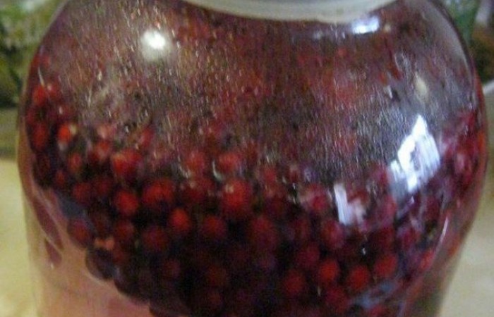 4По истечению времени процеживаем жидкость через марлю, а сами ягоды так же отжимаем через марлю.