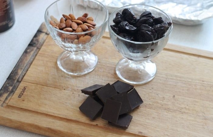 4Чернослив выкладываем на фольгу и отправляем в холодильник на 30 минут.