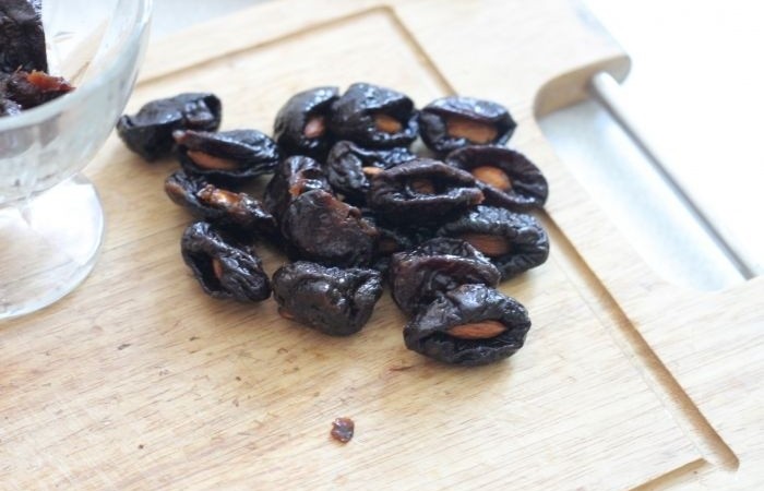 2Чернослив тщательно промываем, просушиваем и кладем во внутрь миндаль.
