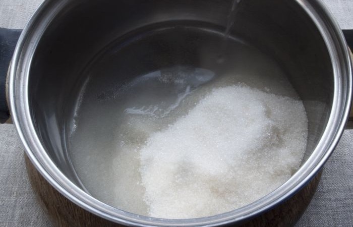 2В кастрюлю наливаем воду и добавляем 300 г сахара.