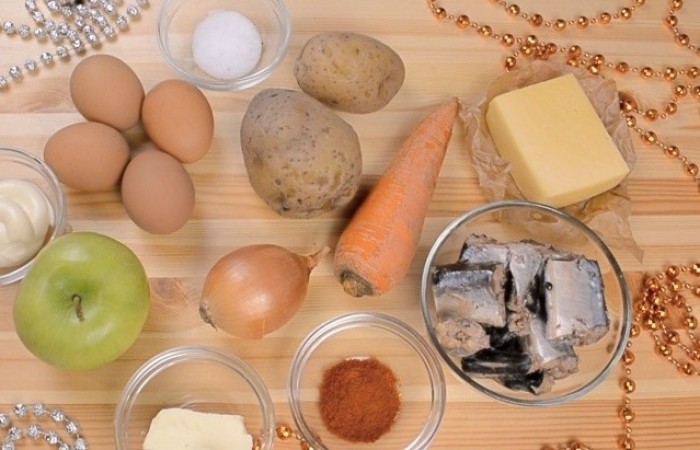 Оригинальный салат "Новогодняя мимоза" станет настоящим украшением праздничного стола. Готовится салатик быстро, а получается невероятно вкусным и аппетитным.