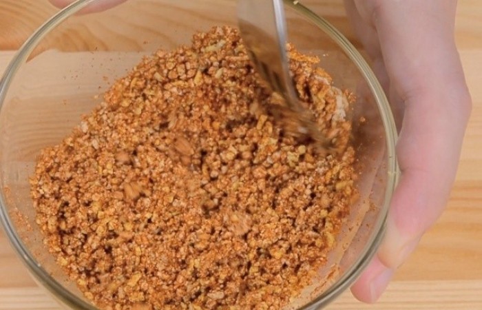 10Желтки трем на мелкой терке. Два желтка смешиваем с паприкой.