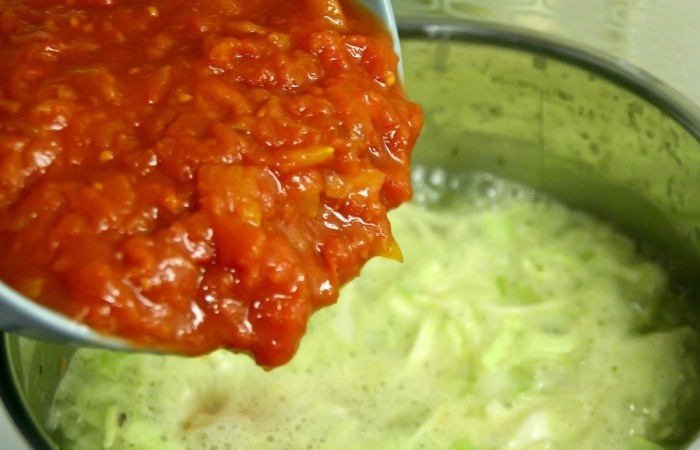 3Капусту шинкуем с помощью специальной терки или ножом.