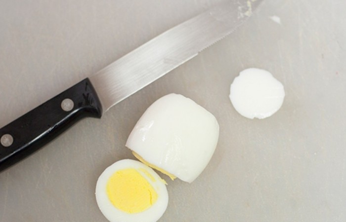 3Срезаем верх и низ у яйца.