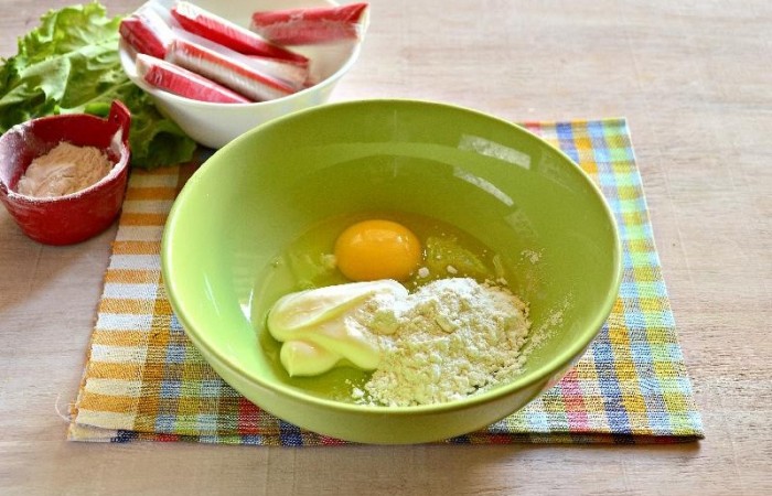 7Крабовые палочки окунаем в кляр.