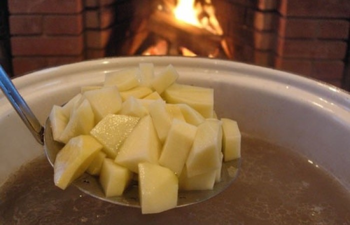8Добавляем нарезанный кубиками картофель.