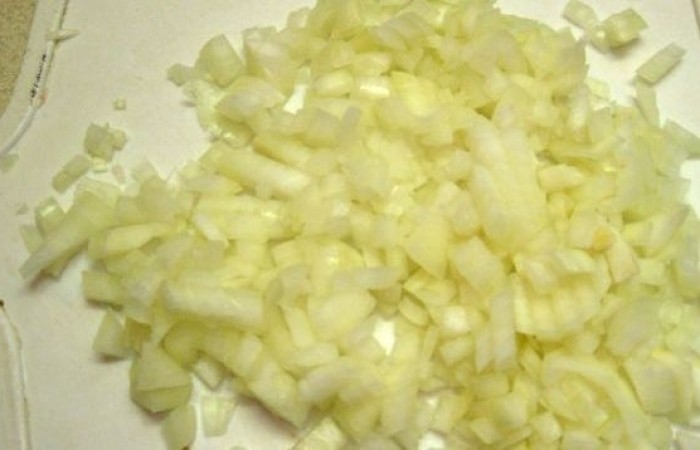 3Тем временем лук нарезаем небольшими кубиками.