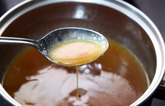 2Добавляем мед и перемешиваем.Выключаем огонь.