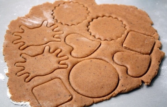 6Тесто раскатываем в тонкий пласт толщиной полсантиметра и вырезаем различные фигурки.