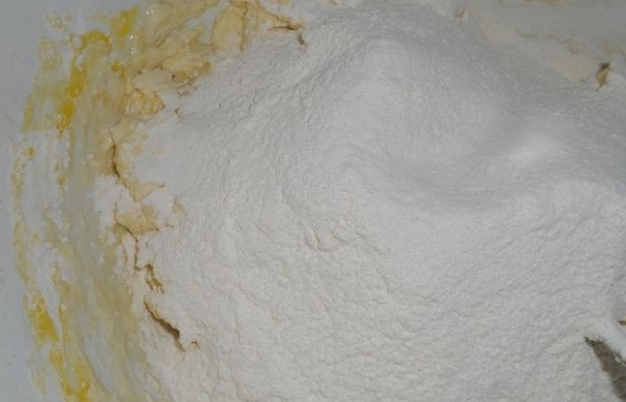 2Готовим тесто. Яйцо растираем с размягченным сливочным маслом. Добавляем соль и розмарин. Тщательно все перемешиваем и всыпаем муку.