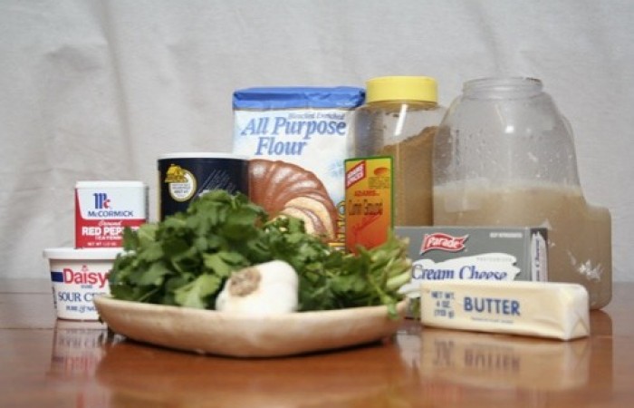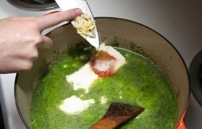 6Добавляем измельченный чеснок, сыр, сметану, соль и специи.