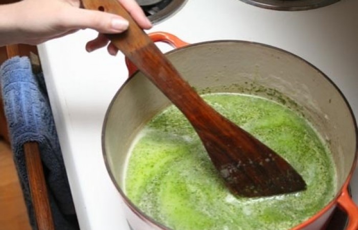 5Затем добавляем оставшийся бульон и пюре из сельдерея. Перемешиваем и варим 5- 7 минут.