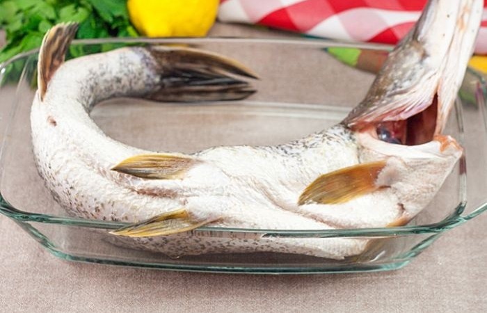 5Щуку промываем, удаляем голову и очищаем от внутренностей, при этом не разрезая брюшко.