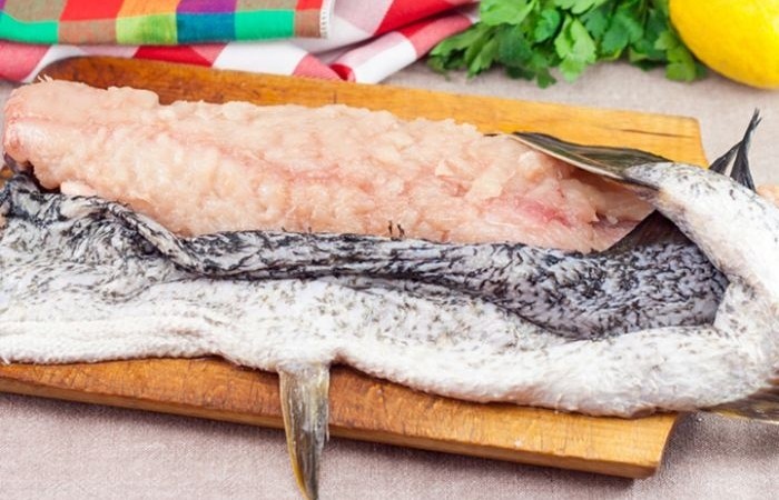 7в результате получается отдельная кожа и мясо щуки. Мясо перекручиваем с помощью мясорубки, а кожу промываем и обсушиваем.