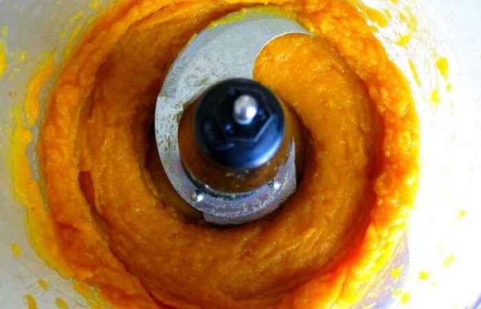 2В чашу блендера кладем фасоль (воду предварительно сливаем) и запеченный батат. Все пюрируем. Добавляем соль, перц, специи по вкусу, а также тихину, кленовый сироп, муку и панировочные сухари.