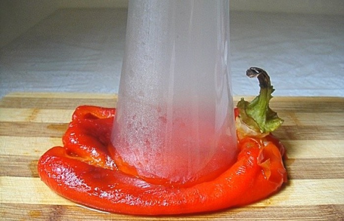 3Перец отправляем в духовку на несколько минут, а затем достаем и вырезаем кружочки.