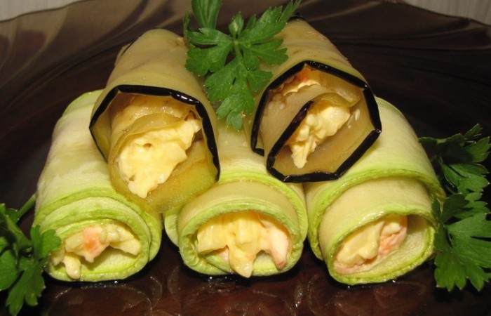 Как приготовить Рулетики из баклажанов и кабачков - пошаговое описание