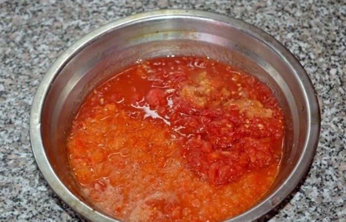 2Тем временем готовим аджику. Помидоры очищаем от кожи, предварительно обдав их кипятком. Перец очищаем от семян и ножек. Зубчики чеснока тоже очищаем.