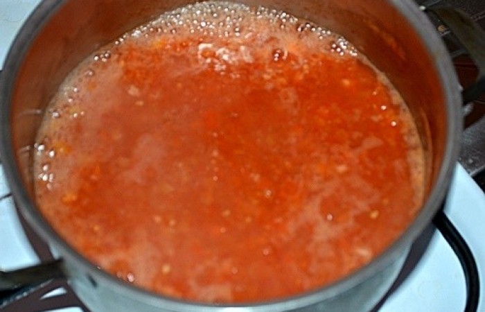 4Ставим аджику на огонь и доводим до кипения. Затем добавляем соль с сахаром. Перемешиваем и готовим на медленном огне в течение 10 минут. оставляем остывать.