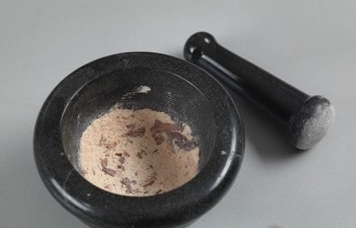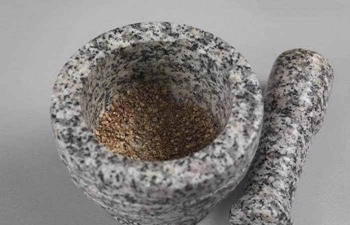 8В ступке растираем кинзу с кориандром.