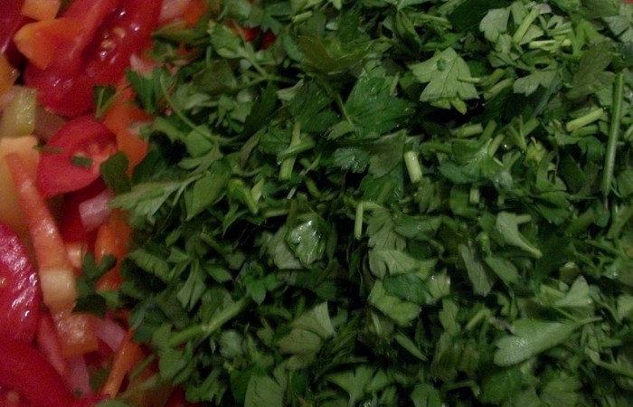 6Добавляем рубленую петрушку и опять тщательно все перемешиваем.