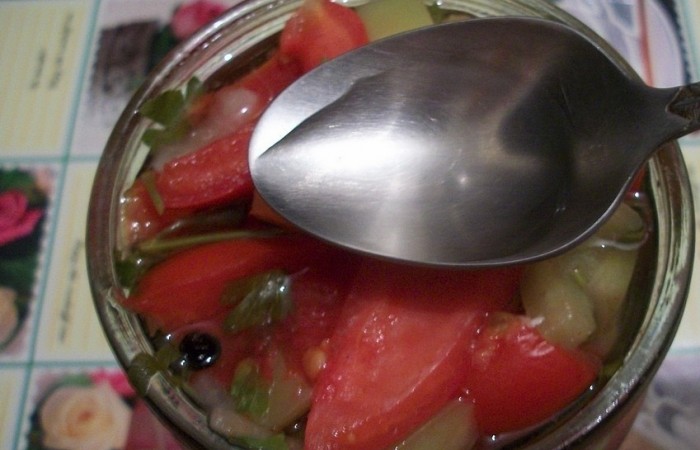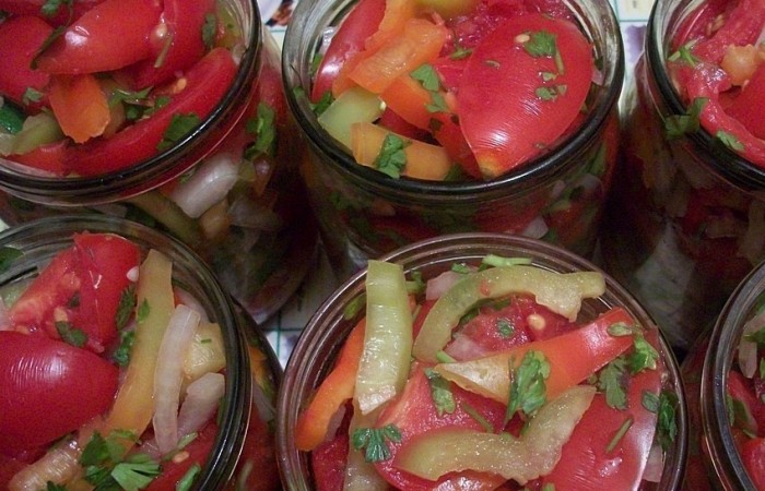 Как приготовить Консервированный салат из помидоров и болгарского перца - пошаговое описание