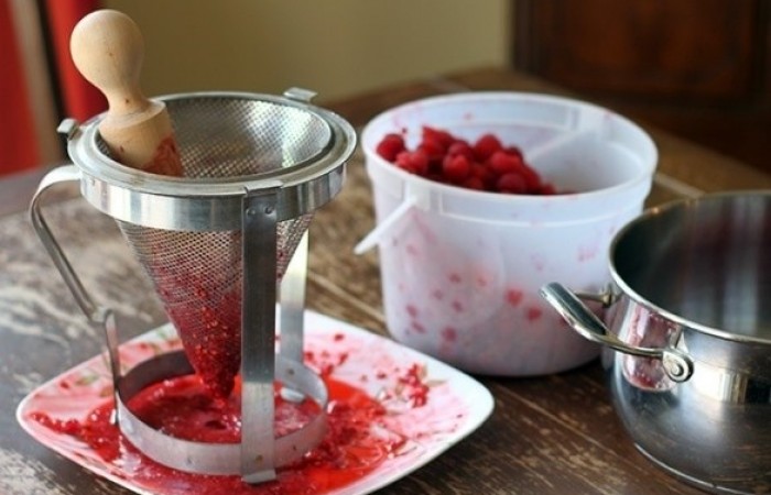 2Получается вот такая кашица. Также, малину можно размять с помощью толкушки или вилки.