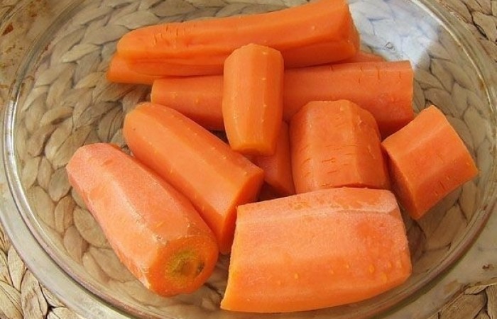 2Тем временем морковь очищаем, промываем и нарезаем небольшими кусочками.