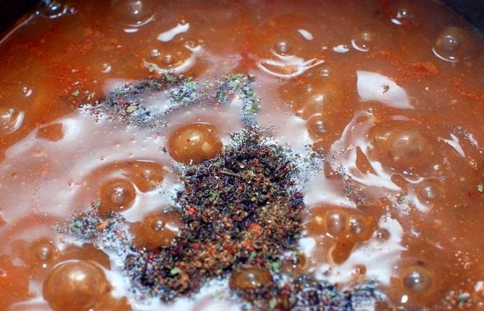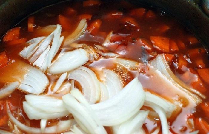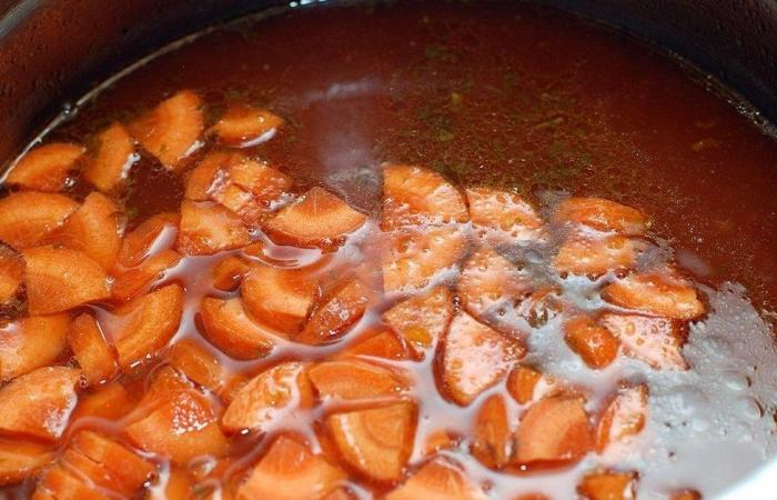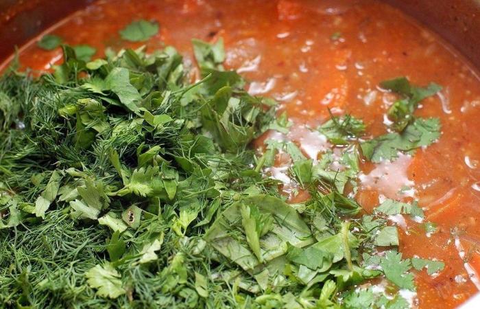 7В бульон выкладываем морковь и соус ткемали. Доводим до кипения.