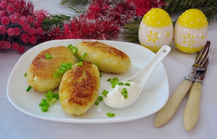 14Картофельные котлеты подаем с зеленым луком. Приятного аппетита!