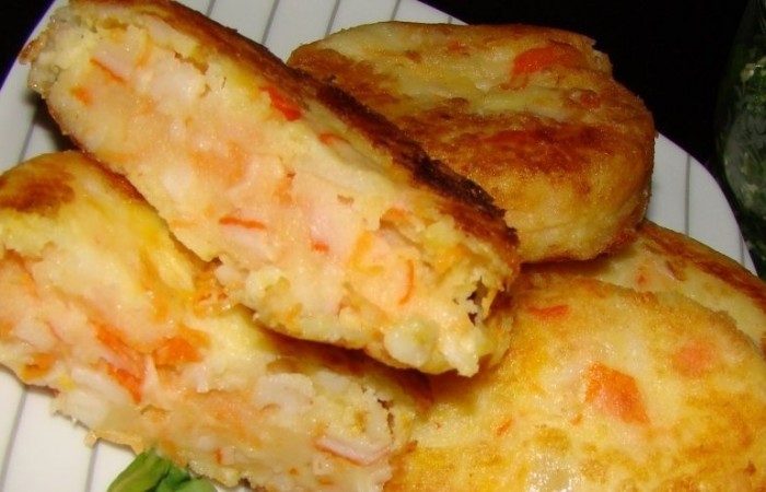 Вкуснейшие картофельные котлеты с крабовыми палочками, представленные в данном рецепте, легкое блюдо, которое обязательно придется по душе не только взрослым, но и детям. Все, что нам нужно для котлеток - это картофельное пюре, крабовые палочки, морковь и тертый сыр, который внесет своеобразную изюминку в блюдо.