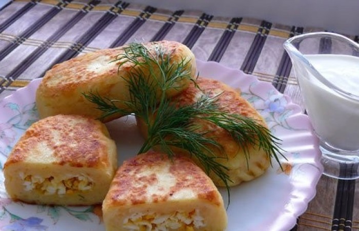 Картофельные зразы - отличная альтернатива приевшемуся картофельному пюре, которые можно готовить с различной начинкой. В ниже представленном рецепте в качестве начинки выступают яйца с обжаренным луком и зеленью, а тесто представляет собой картофельное пюре, смешанное с мукой и яйцами.