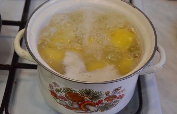 1Картофель очищаем и нарезаем небольшими кубиками.