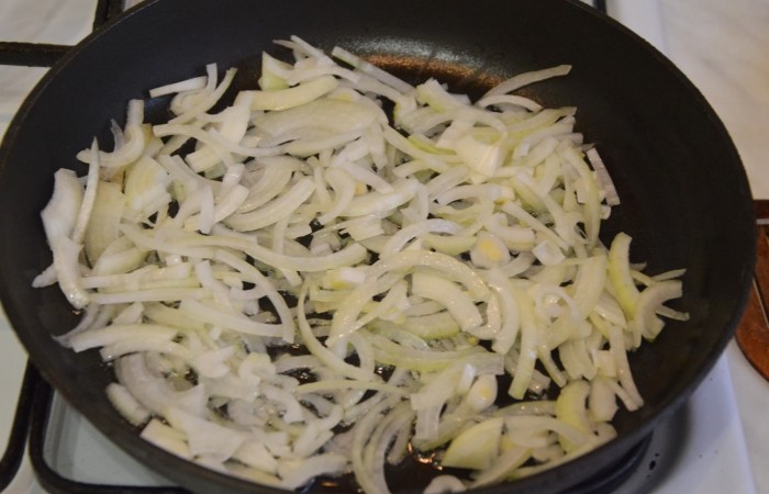 4Лук нарезаем полукольцами (можно нарезать и мелко).