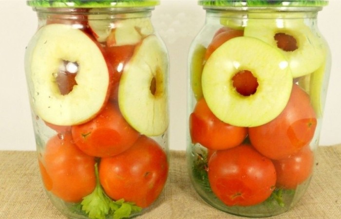 Как приготовить Маринованные помидоры с яблоками на зиму - пошаговое описание