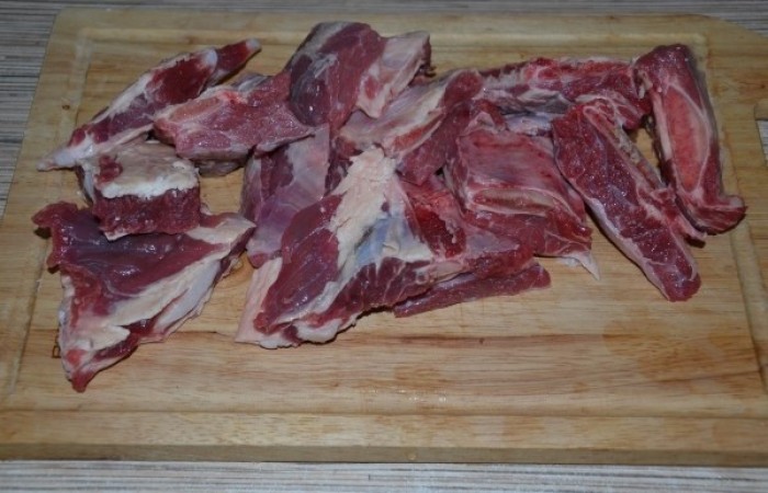 1Ребра промываем и обсушиваем. Нарезаем кусочками среднего размера.