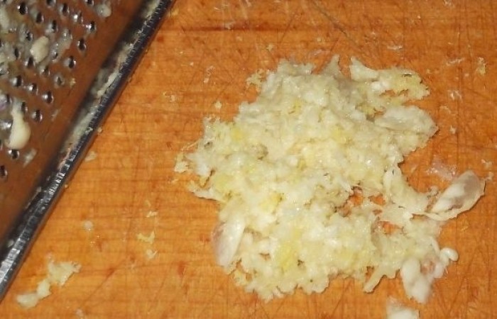 3Чеснок тоже трем на мелкой терке.