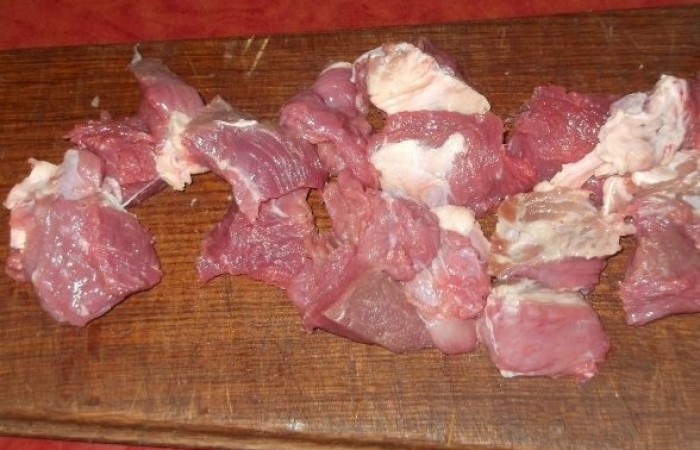 6Мясо нарезаем небольшими кубиками.