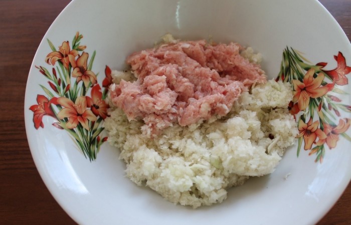4Добавляем мелко нарезанный лук (можно тоже измельчить в блендере или мясорубке).