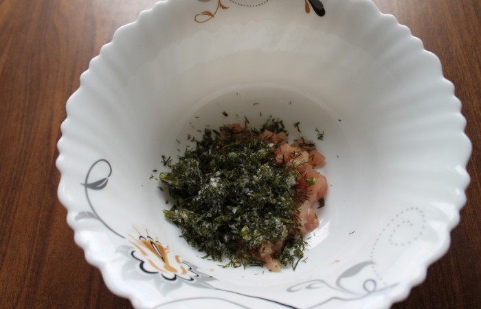 1Филе промываем, обсушиваем и рубим мелкими кубиками.
