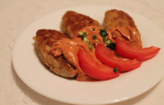 5Из рыбной массы формируем котлеты, обваливаем их в панировочных сухарях и обжариваем с двух сторон до готовности.