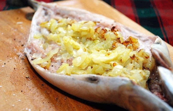 1Делаем надрез на брюшке, удаляем хребет, кости и внутренности. Формируем "лодочку". Натираем солью и специями.