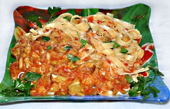Тальятелле - разновидность итальянских макаронных изделий, в частности, лапши, с которой сочетается немалое количество ингредиентов. Здесь представлен рецепт тальятелле с грибами и острым перцем. Это пикантное блюдо особенно придется по душе любителям остренького.