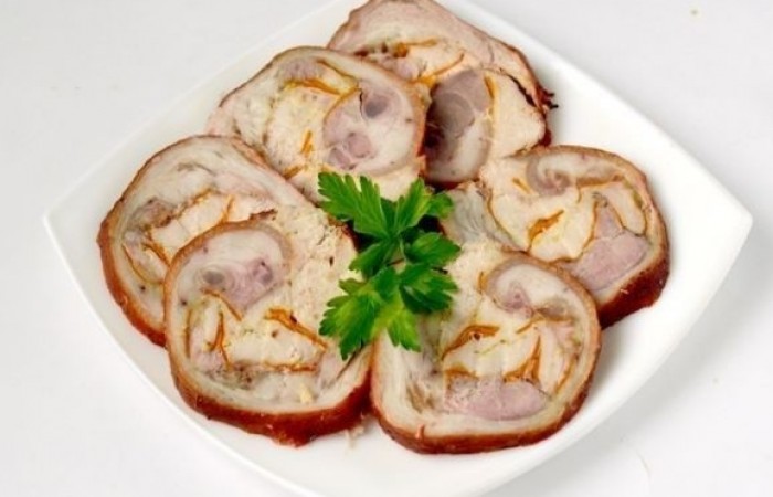 Предлагаем вам интересный рецепт изысканного рулета из запеченной свиной рульки, который несомненно разнообразит ваше меню и порадует потрясающим вкусом. Конечно, над приготовлением рулетика нужно будет немного поколдовать, но результат несомненно стоит того.