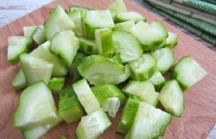 1Огурцы нарезаем небольшими кусочками.