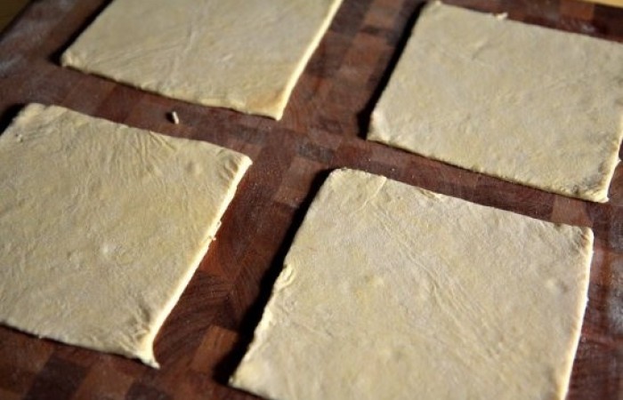 4Разрезаем пласт примерно на 8 квадратов (4x4 см).