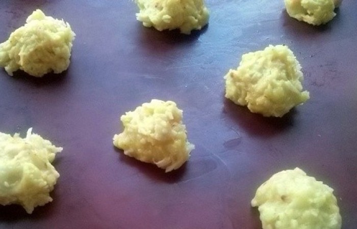4Выкладываем с помощью чайной ложки или кондитерского мешка тесто в форме булочек на противень, застеленный пергаментом или силиконовым ковриком. Отправляем в духовку на 25 минут, предварительно разогретую до 180 градусов.