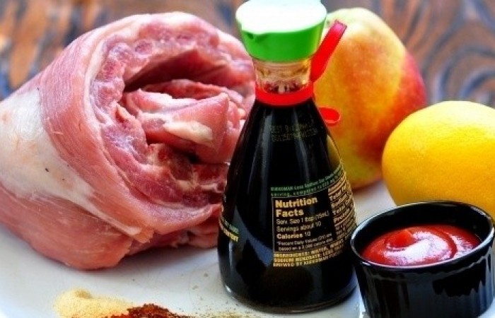 3Готовим маринад. Смешиваем все ингредиенты вместе с яблочным пюре.