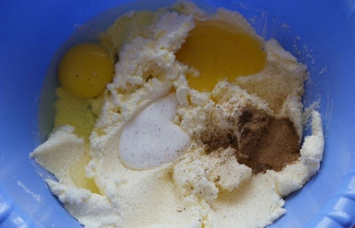1Размягченный маргарин смешиваем с сахаром и тщательно растираем.